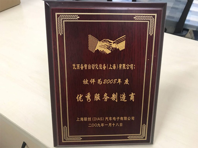 Excellent Service Manufacturer 2008 View Larger Image Europlacer (Shanhai) Co., Ltd were delighted to be awarded as the Excellent Service Manufacturer in 2008. This plaque was awarded by Dias Automotive Electronic Systems Co., Ltd on 18th January 2009 for the distinctive service the previous year.