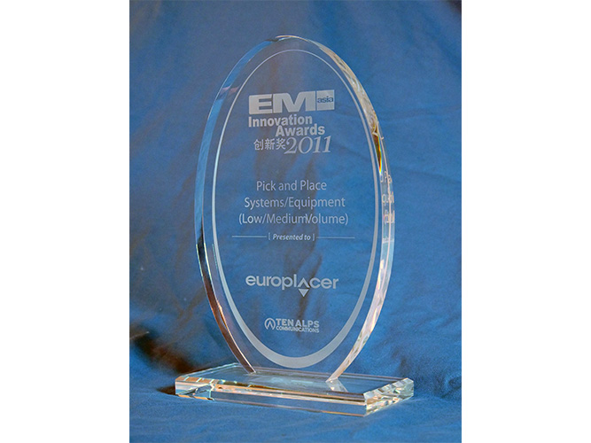 Innovation Award 2011 View Larger Image We were awarded the Innovation Award by EMasia, this was awarded to Europlacer in 2011 for our Pick and Place Systems and Equipment (Low/ Medium Volume).