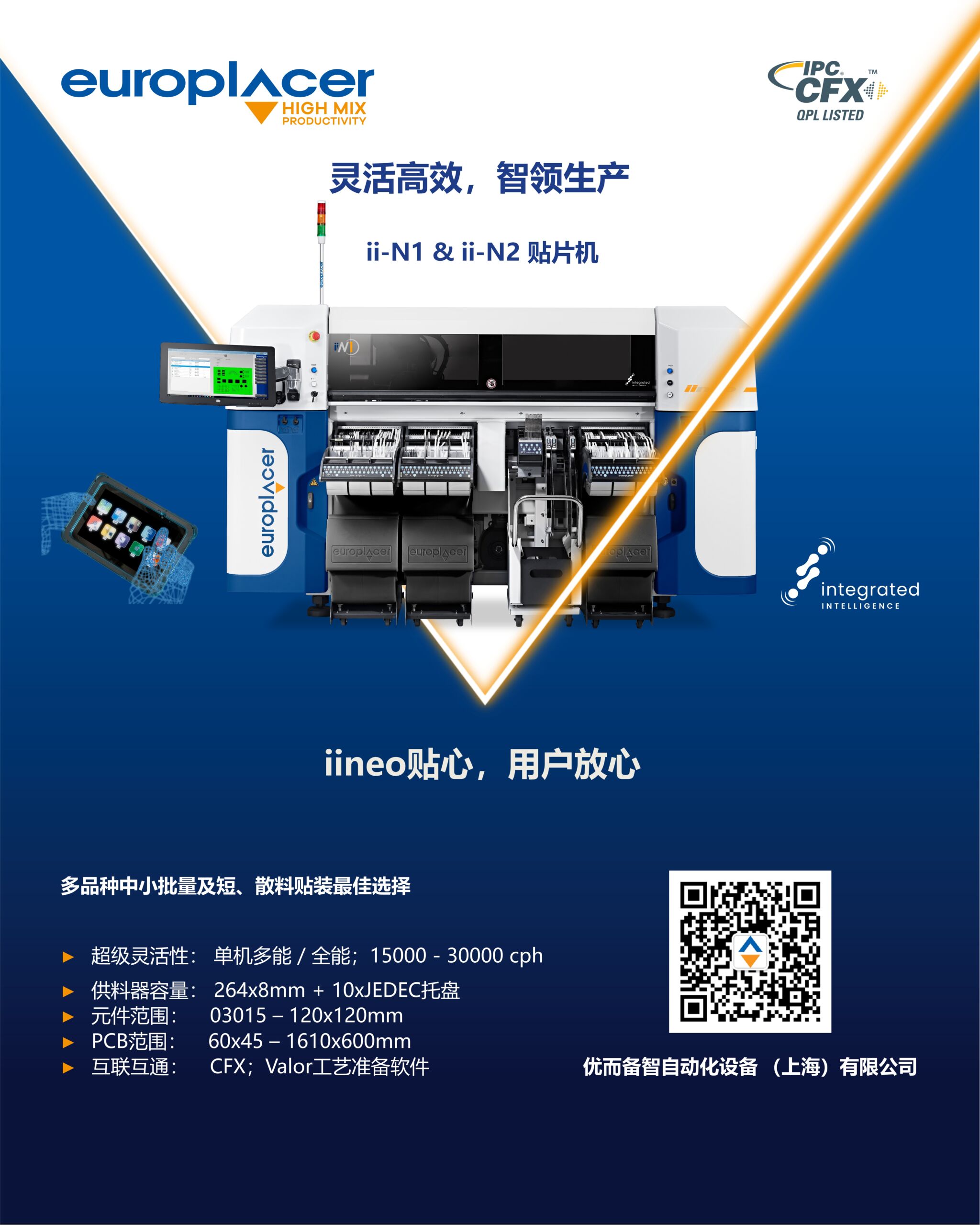 Europlacer 中国公司联合总经理邢光明先生和张平忠先生联袂针对“多品种中小批量贴装理想解决方案”分别发表主题演讲,向 1000 多位与会专业人士介绍了 Europlacer 集团今年 4 月推出的 iineo 系列贴片机型 ii-N1 和 ii-N2,重点推介了产品的匠心独具之处:一机多能/全能、灵活性与速度/效率兼备、能有效解决国防军工院所企业及其外协单位在多品种短散料中小批量贴装中经常碰到的痛点和难点,获得了与会人士的积极反响与兴趣。在会议期间还与当地用户及专业人士就 Europlacer 贴片机进行了深入交流,极大促进了相互的了解和友情。