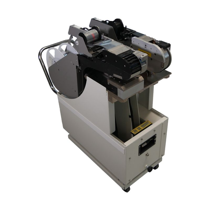 An open-top drawer located in its base collects used tapes or empty sticks from the feeders, giving operators simplicity in use.