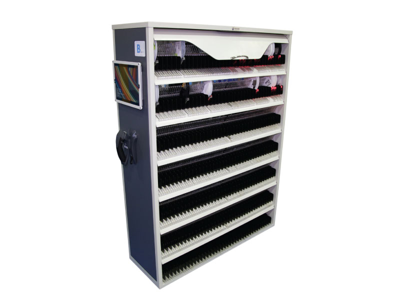 Each unit has doors that keep reels from being removed, and you can add an electronic lock to keep your parts locked inside until needed. With ESD-conductive casters, add a battery to make the unit fully mobile. Available to store reels 7”-15” in diameter and 8-56mm in width.