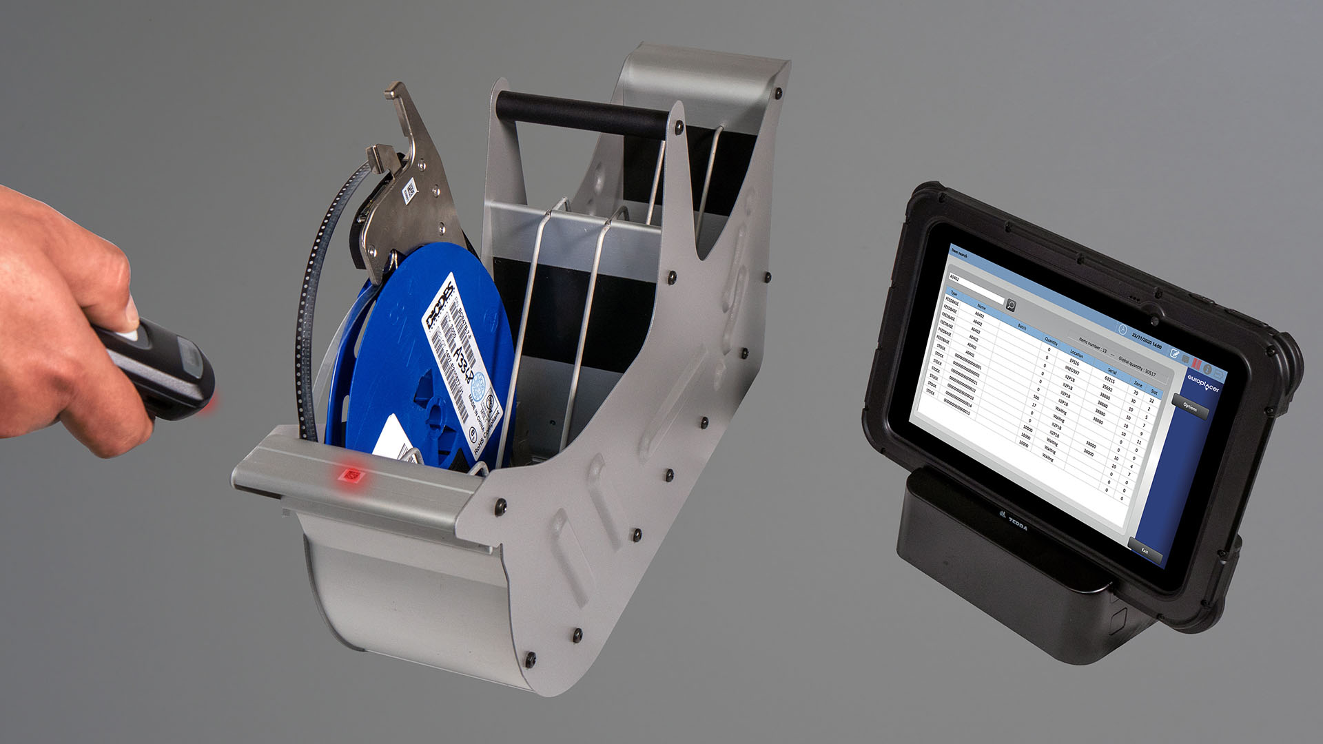 The Stock Management station is controlled by our ii-Tab for the programming of Europlacer’s intelligent feeders. Key benefits include the ability to track the quantity on each individual reel, whether connected on the machine, feeder storage, or in stock.